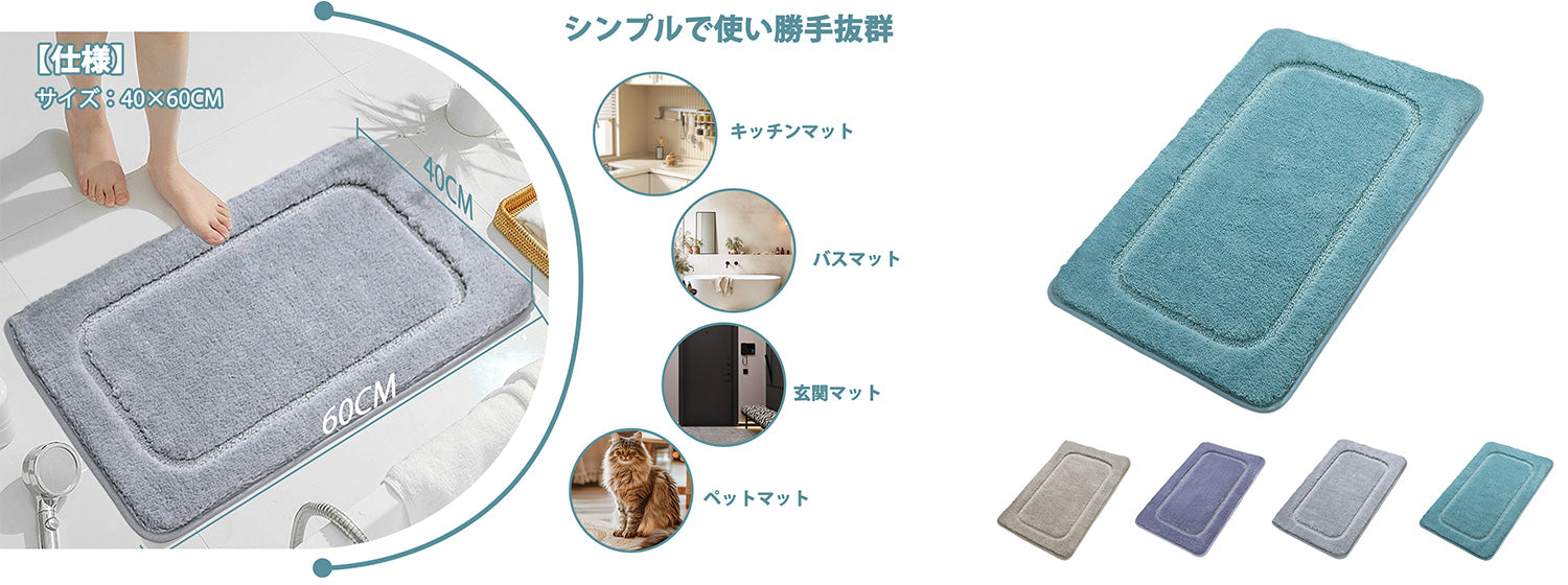バスマット お風呂マット あしふきマット 足拭 滑り止め 吸水 マイクロファイバー キッチン 玄関 ドア 洗面所 浴室用 洗える 速乾 おしゃれ 大判 人気