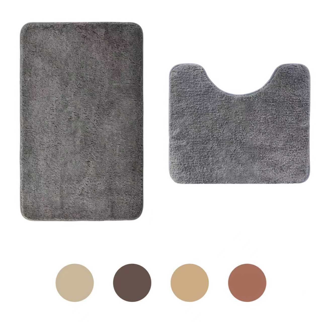 トイレマット バスマット 2点セット ふかふか モダン マイクロファイバー お手洗い トイレ床マット 敷物 洗える カーペット ロング おしゃれ 速乾 吸水 人気 北欧 滑り止め付き