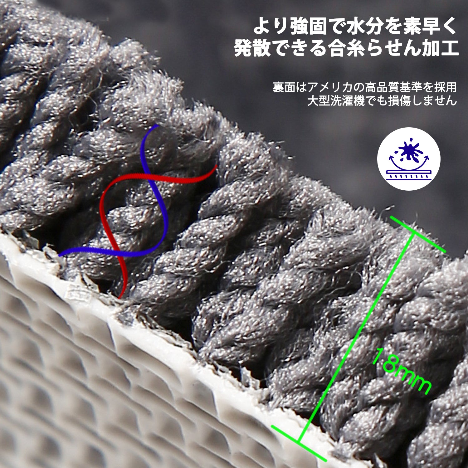 ✨【極上の肌触りと吸水速乾性】 高密度マイクロファイバーを使用したタオル地は、ふわふわでやさしい踏み心地。二重層の長方形の線が吸水をサポートし、驚異的な吸水力で足元の水分をしっかりキャッチ。水切れの良さと速乾性で、浴室や屋外使用後もすぐ乾き、カビや菌の繁殖を防止。清潔で快適な状態を保ちます。