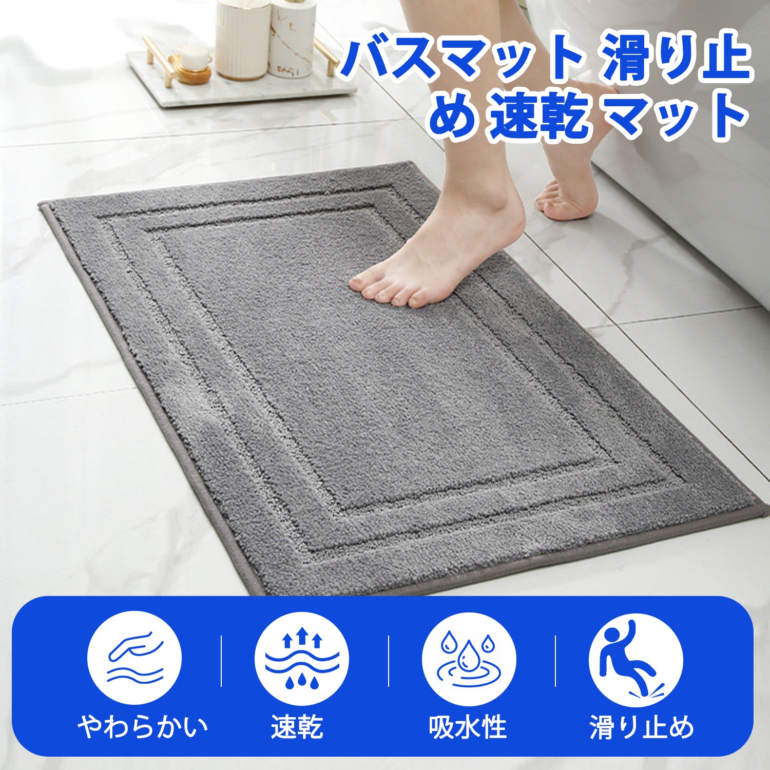 バスマット 風呂 マット 速乾 吸水 防カビ バスマッお風呂場 トイレ スマート おすすめ ソフト 足拭き 洗面所 マット 大判 浴室 玄関 人気 タオル地 足洗 浴室用 キッチンマット 二重層の長方形の線 水切れ 良い 滑り防止 抗菌 40x60CM