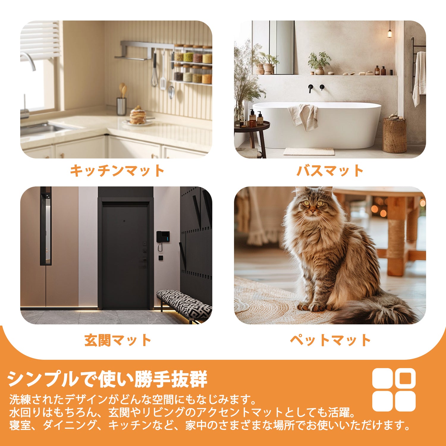 【安定した滑り止め設計】底面にはTPR素材を採用した滑り止め加工を施しており、フロアにしっかりフィット。玄関や水回りでもズレにくく、ご年配の方やお子様がいるご家庭でも安心してお使いいただけます。